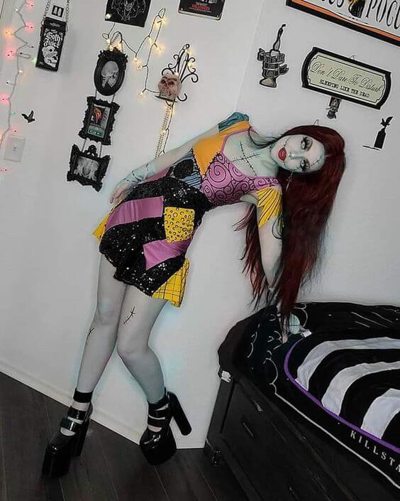 Sally de “El Extraño Mundo de Jack“, con su vestido patchwork y su característico maquillaje, es un clásico del cine. También puedes optar por la Reina Roja de Alicia en el País de las Maravillas, con su estilo excéntrico y elegante. No olvides incorporar el maquillaje característico y accesorios como corazones y detalles en rojo.