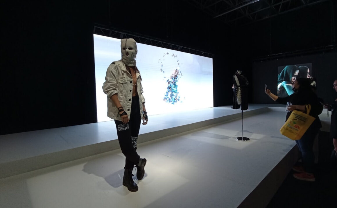 Por otro lado en el área de Fashion Space, siguió esta línea de exposición pasarela. Abriendo el segundo día de Intermoda 77, Salim, cuya colección cápsula “REVXLUTION” llamó mucho la atención de los presentes. El público se veían impresionado por el trabajo y la propuesta blanco y negro. Fue un trabajo bastante pulido, que jugó con el oversize y el fit ceñido, y claro que tenía el sello de la marca que se dedica a la producción de indumentaria bajo la filosofía de upcycling. Vimos candenas, asimetría, cortes en las prendas, cinturillas, sombreros y otros accesorios que jugaban entre lo urbano, lo futurista y la simpleza de básicos realzados.